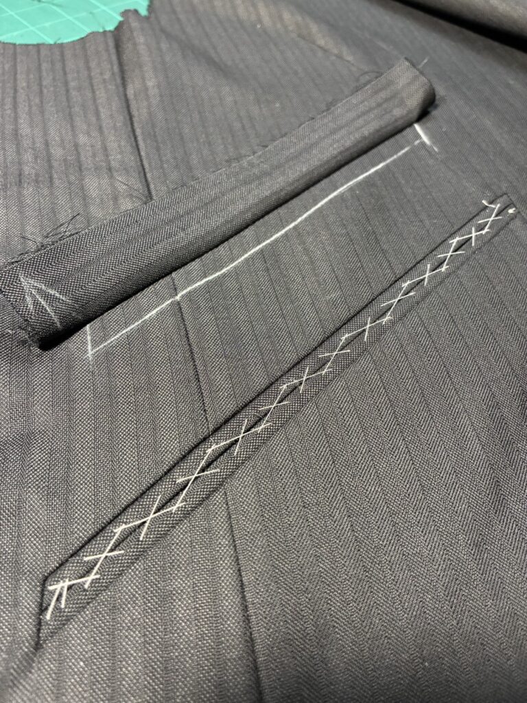 イタリアの名門 Fratelli Tallia Di Delfino の生地を使った一着を、ただいま丁寧に仕立てています。