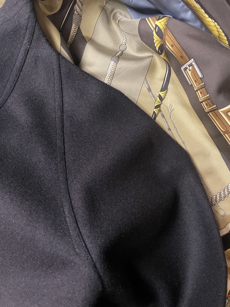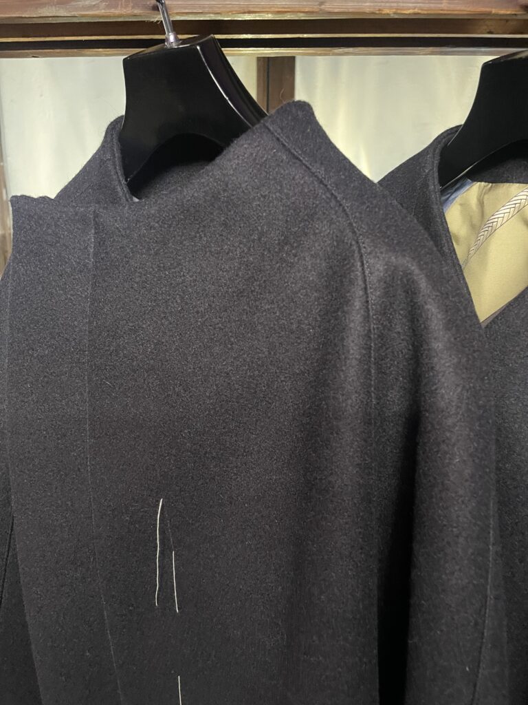 そもそもの当初のオーダー内容は和装の上に羽織れるコートでして、その後、洋装にも合わせれる様に様々なアレンジをかけていきました。